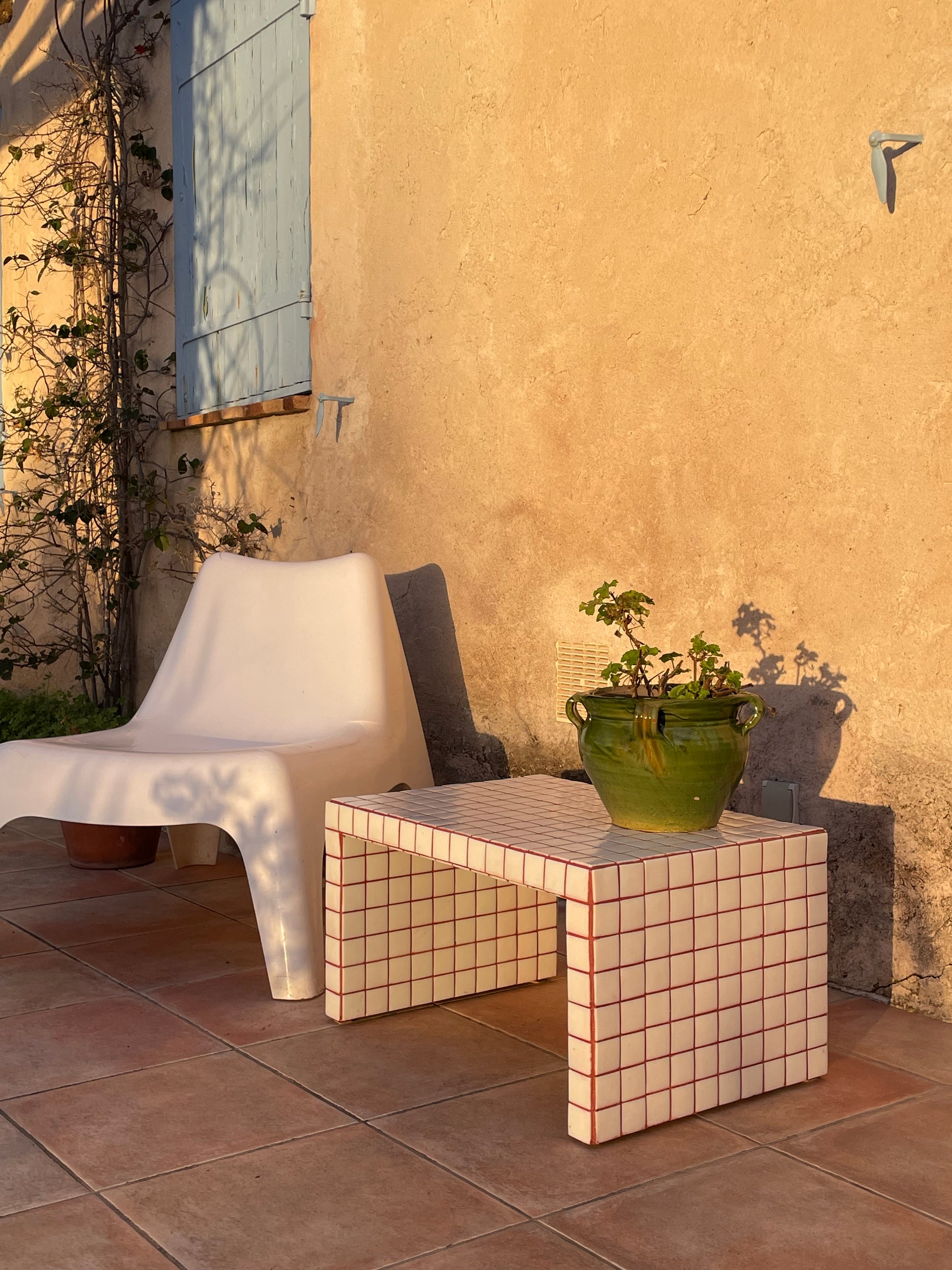 carreaux blancs, joint terracotta
